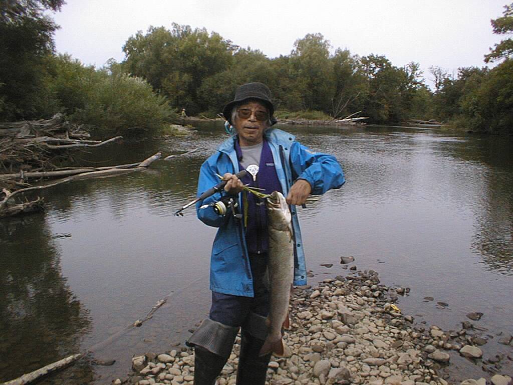 しばらくして、それは細谷先生が釣った幻の大魚イトウであることがわかった。(左の写真)この界隈では2〜3年に一度クラスの大物だった。