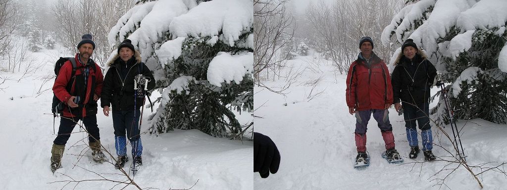 僕はおにぎりを6個用意してきたの で、三人で二個ずつ食べた。その時ワーシャが、「これは寿司と言うのだろう?」と、聞いてきたので、思わず笑ってしまったが、おにぎりと寿司の違いを一応 説明しておいた。やがて雪はやんだが、僕には今さらもう一度山頂をめざす気力も体力も無く、その楽しみは次回に持ち越す事にした。 |