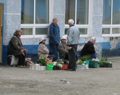 工場など産業施設の無い地方の小さな町では働き口が限られており、現金収入を得るのは難しい。現金収入が少なければ自給自足的にならざるを得ず、豊かな海や山は近くにあり、野菜や果物は自分で栽培する傾向になる。従って地方の小さな町の市場では買い物客の数も限られ、市場の規模も小さくなる。市場と書かれていたノグリキの一角では、小さな露店で野菜、魚、ジャム類と乳製品が売られていた。