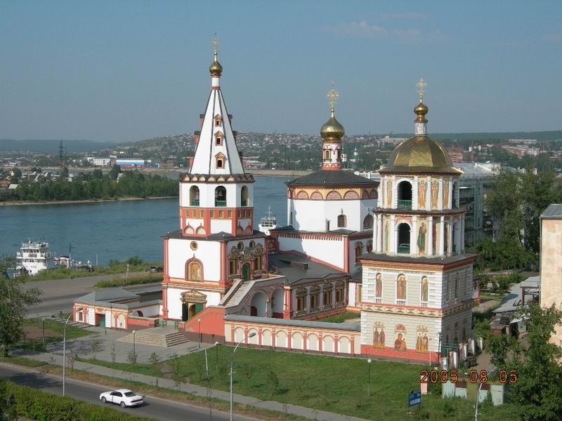 スパスカヤ教会(1710年建立)二階建ての教会は石造りとしては東シベリアで最も古く、隣に並んで建つ鐘楼は1762年に建立された。鐘楼の1〜2階部分はイルクーツク郷土史博物館の別館として利用されている。5階が鐘突堂で、ここからの眺望は良い。このスパスカヤ教会もロシア国定建築記念物にしてされている。 |